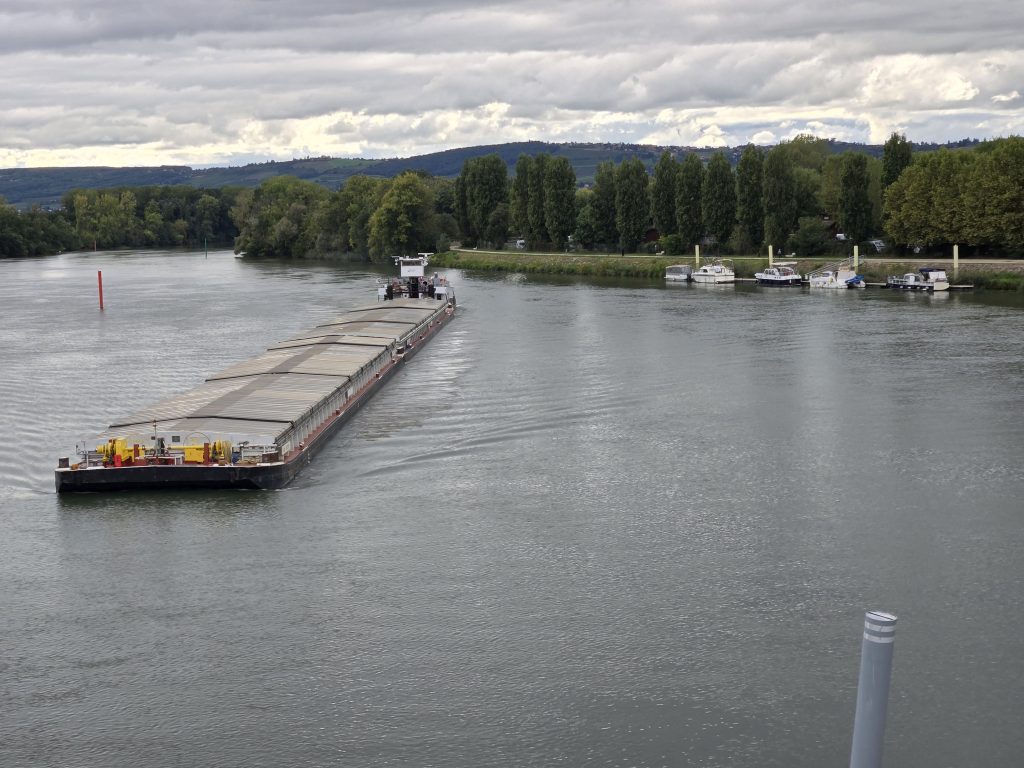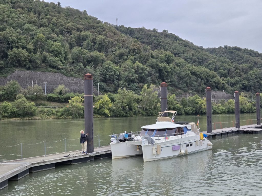 Platz für ein Boot in Andancette. Die Wellen der Schiffe stören als Katamaran nicht sehr.