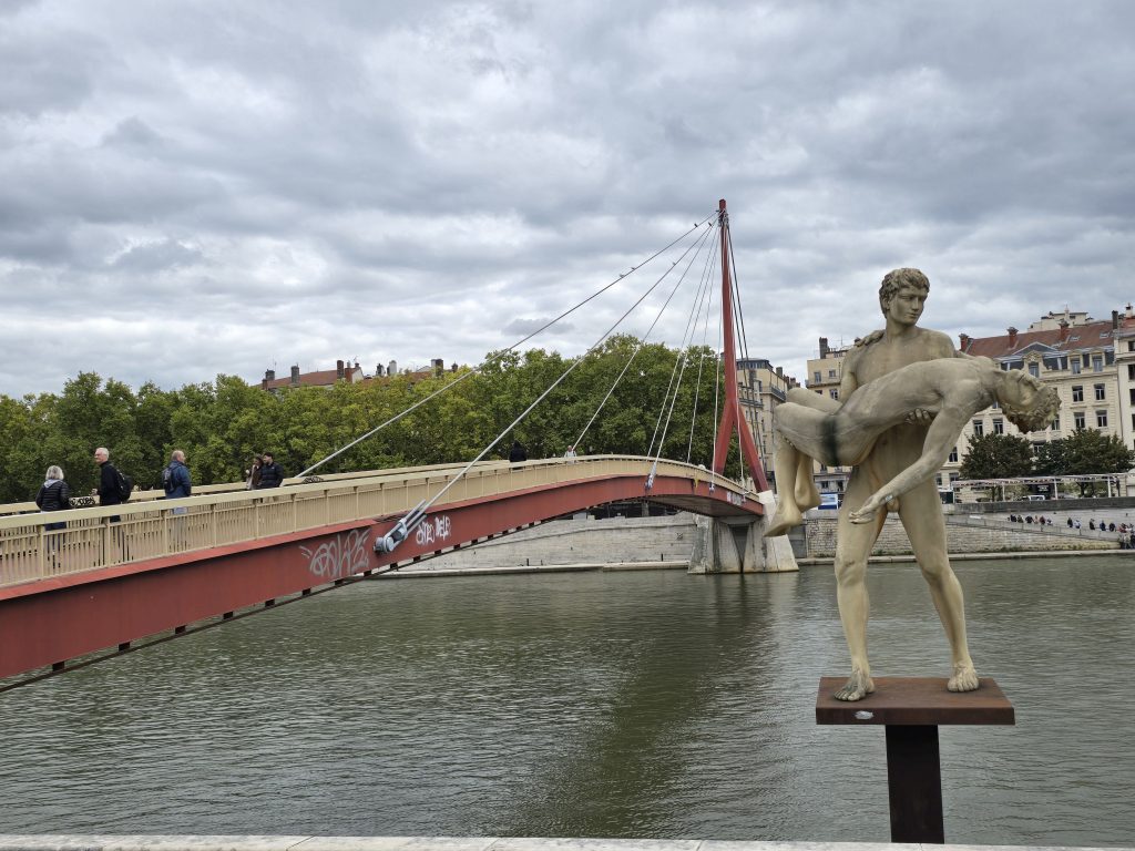 Fahrt durch Lyon. Erster Kontakt mit dem Fahrgastschiff Rhone Prinzess.