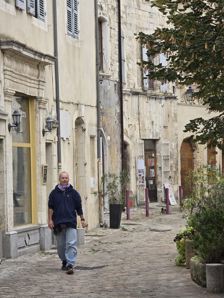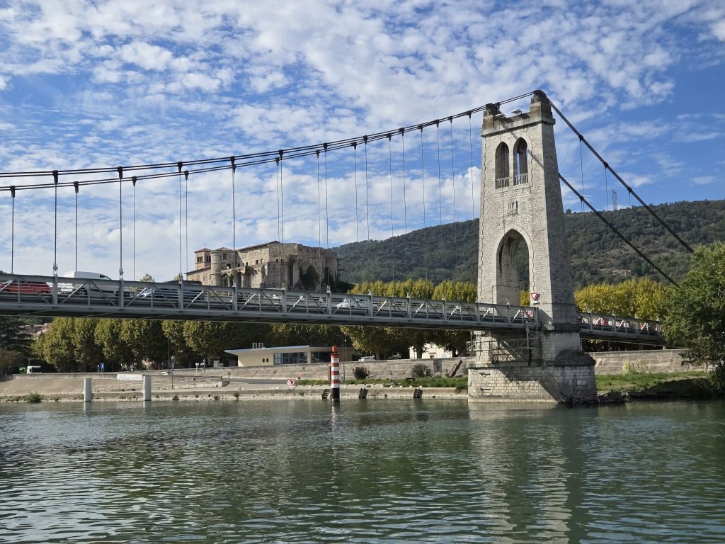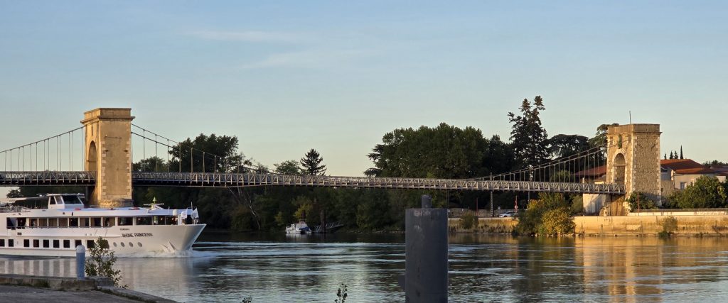 Viviers ist wunderschön. Das wissen auch die Kreuzfahrtgesellschaften. Im Maximum haben wir vier Flußkreuzfahrtschiffe gezählt. Da es 2 Plätze gibt stehen sie dann im Päckchen.