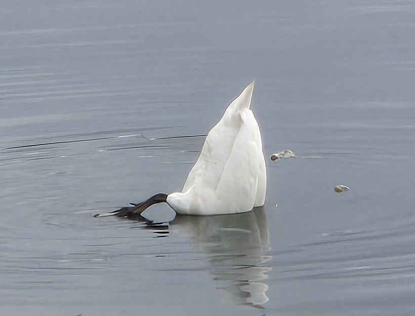 Festgefahren. Er wollte an uns vorbeifahren. Bei unter 1,5m Wassertiefe keine pfiffige Idee. Der Versuch mit dem sitzen auf dem Baum hat nicht geholfen. Nach 2 Stunden waren sie wieder frei.