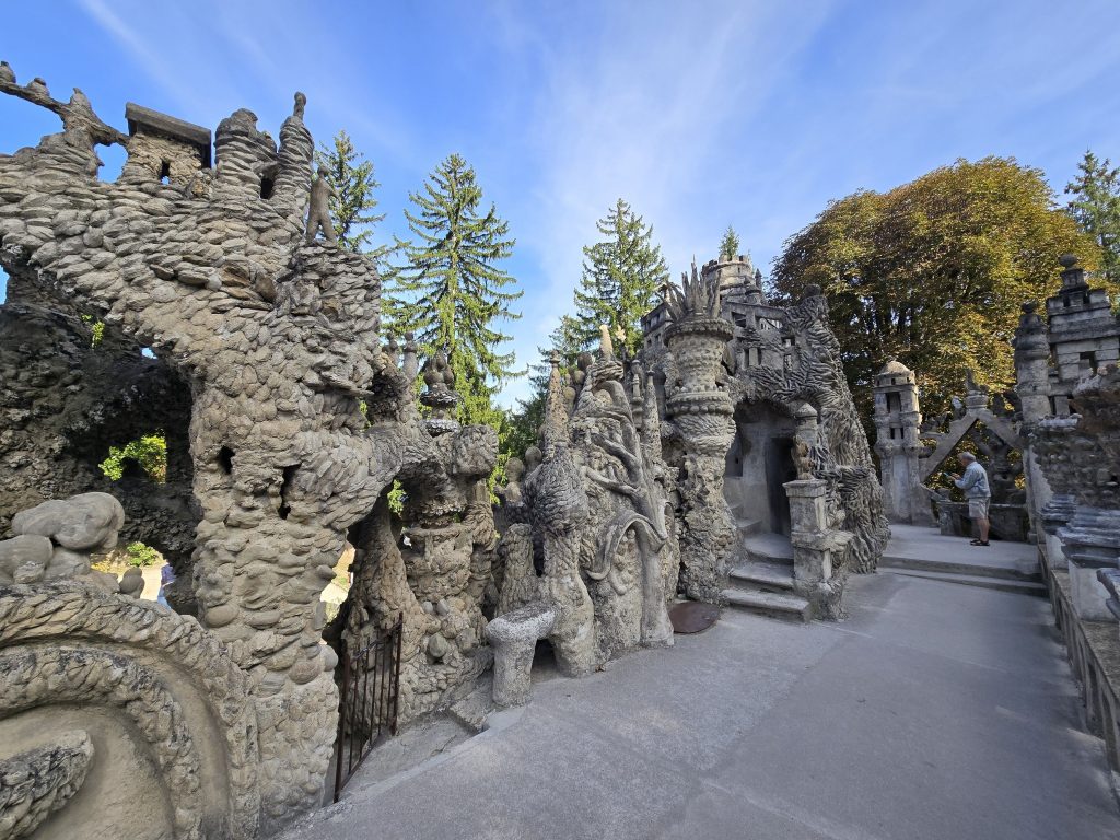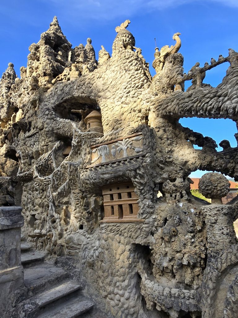 Postbote baut in seiner Freizeit Jahrzehnte seine Phantasie Gebäude mit Steinen welche auf seiner 40km langen Strecken sammelt. Palais Ideal gebaut von Briefträger Cheval in 30 Jahren.