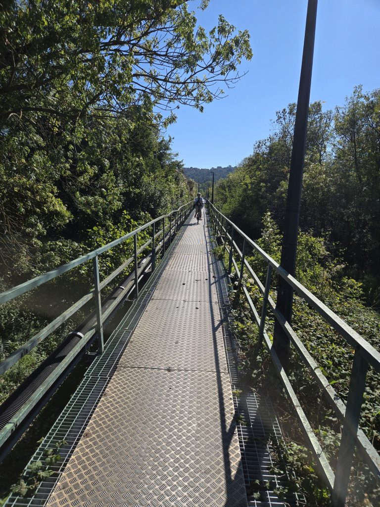 Radtouren um Viviers herum. Kleine Brücke für Fußgänger / Fahrradfahrer.