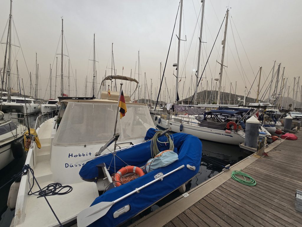 Bei „Sandsturm“, Calima, der heißt hier Scriroco, am 13.11. in Cartagena angekommen. Am 21.11. ist Doro nach Deutschland geflogen. Die Werft hat an unseren Standplatz schon mit vielen Arbeiten begonnen. Wir sind begeistert. Morgen am 24.11.25 habe ich um 8:00 Uhr morgens den Krantermin. Hauptarbeiten sind noch das Unterwasserschiff mit Antifoiling (Silic One von Hempel) neu zu machen. Auf die Halterung des Beibootes (David) kommt ein großer Träger für zwei Solarpanele à 600W. Wir hoffen dass Hobbit bis zum 20.12.25 wieder ins Wasser kommt.